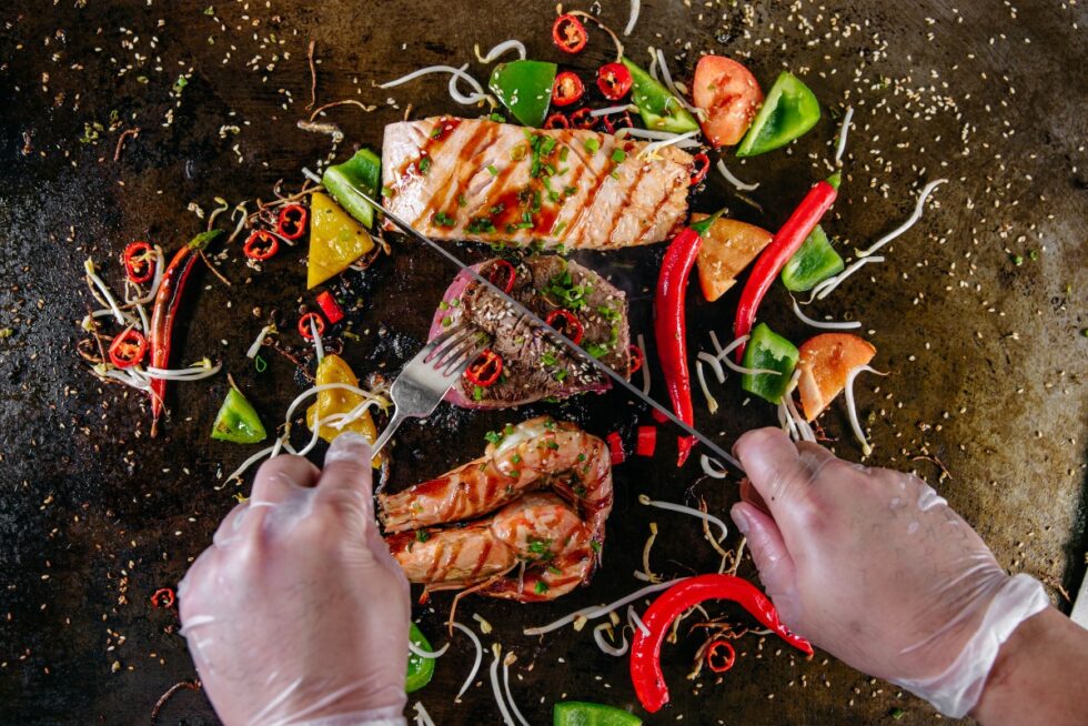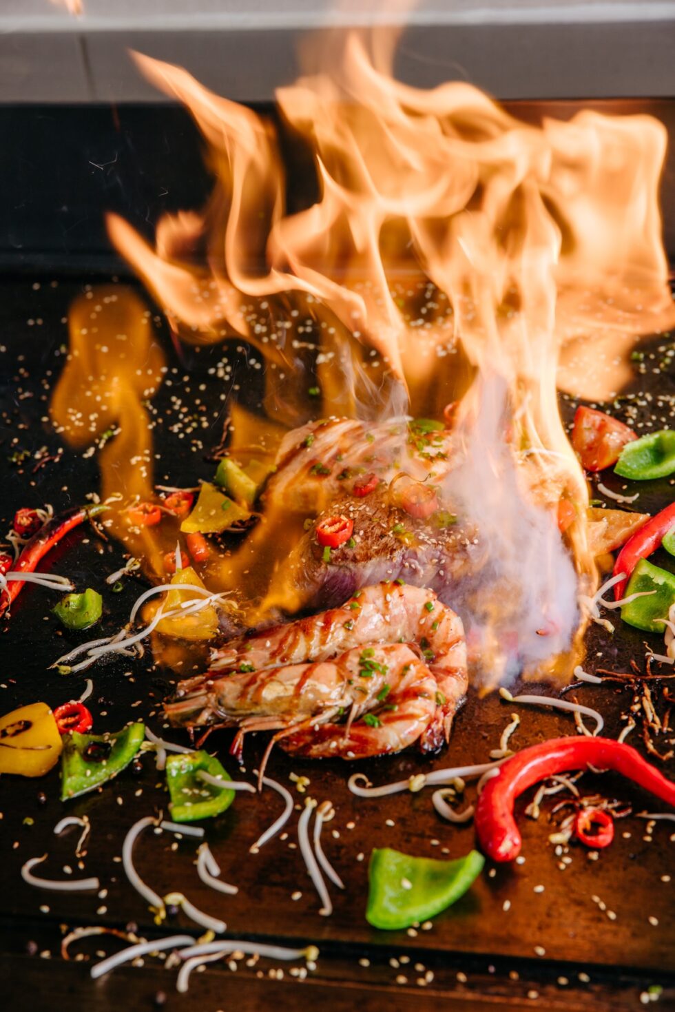 Tender cuts of premium beef tenderloin, expertly seared on a sizzling Teppanyaki grill.